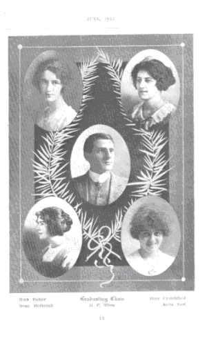The Board set the following course of study for graduation: first year – Latin, English, algebra, physical geography and physiology; second year – Latin, English, geometry, and ancient history; third year – Latin, English, geometry, medieval and modern history; fourth year – Latin, English, physics, American history and civics …Teacher’s salaries were set at $125.00 per month for a ten month term.”